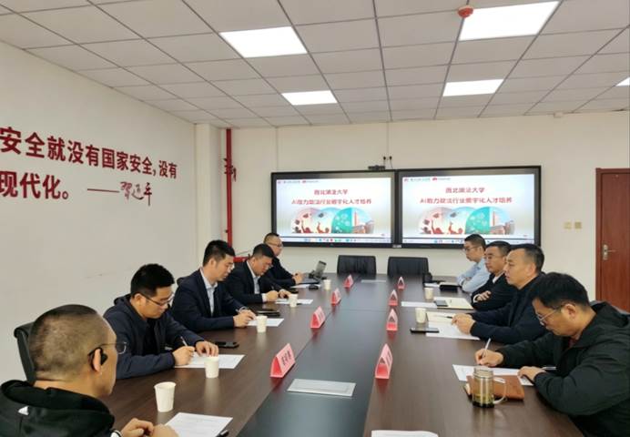 夏尊介绍了华为在科技创新、ICT基础设施建设及教育领域产教融合最新成果。华为公司高级解决方案专家尹文凯分享了AI赋能教育全过程人才培养创新平台的创新思路。双方围绕“法治+数字技术”交叉领域开展创新合作、AI赋能法学教育、数字虚拟法庭建设、司法大模型应用、智慧校园方案等问题深入交流,达成初步共识。